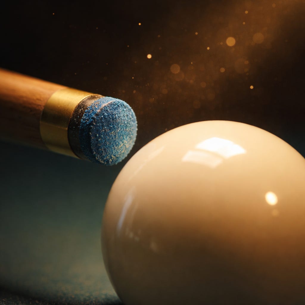 He explained as they went, rules half-remembered, physics learned on the fly. She watched him lean over the table, align his eyes, adjust his grip, miss anyway. He made a sound like a man personally offended by geometry.